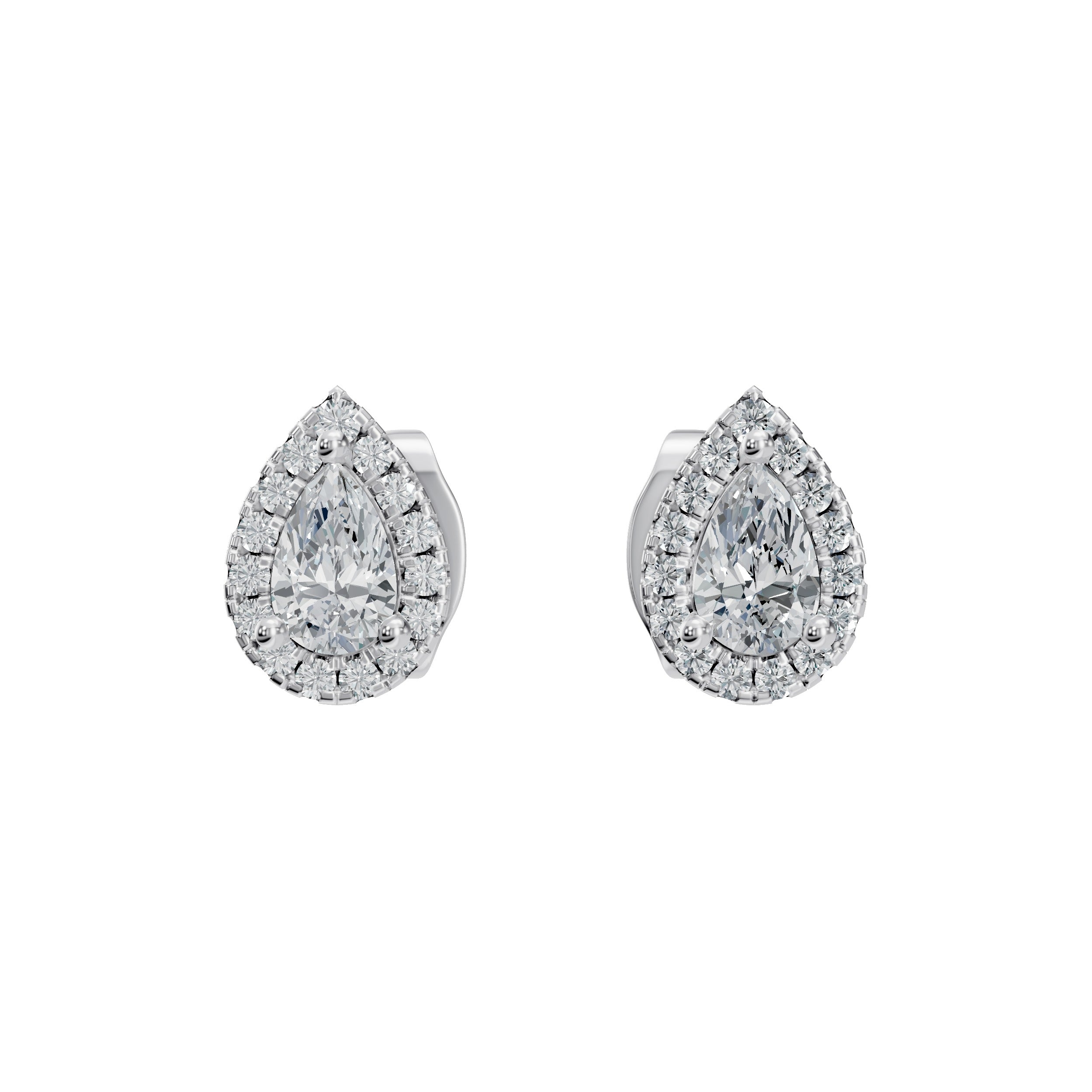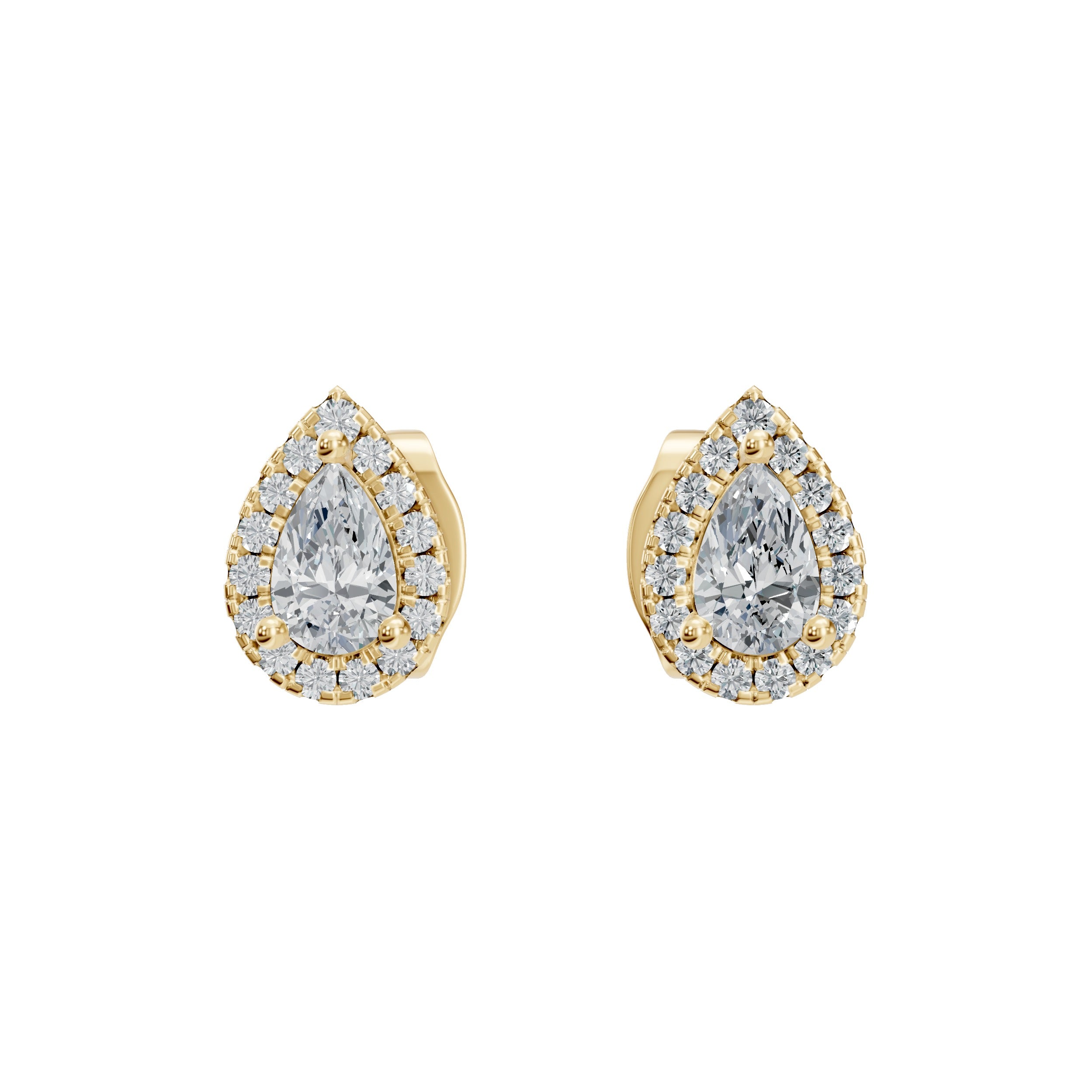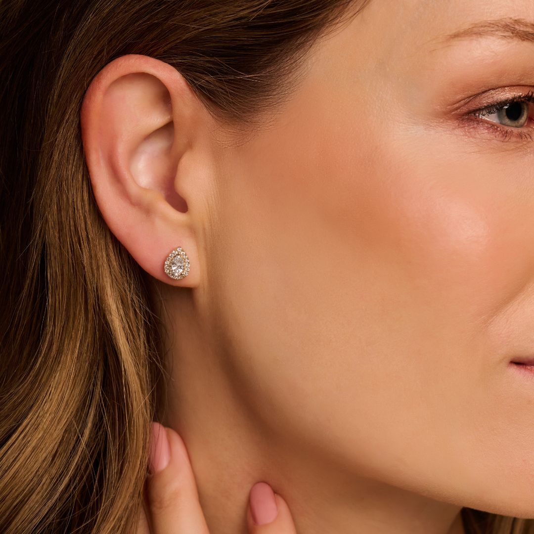 14K Gold | Pear Solitaire Entourage Diamond Stud Earrings