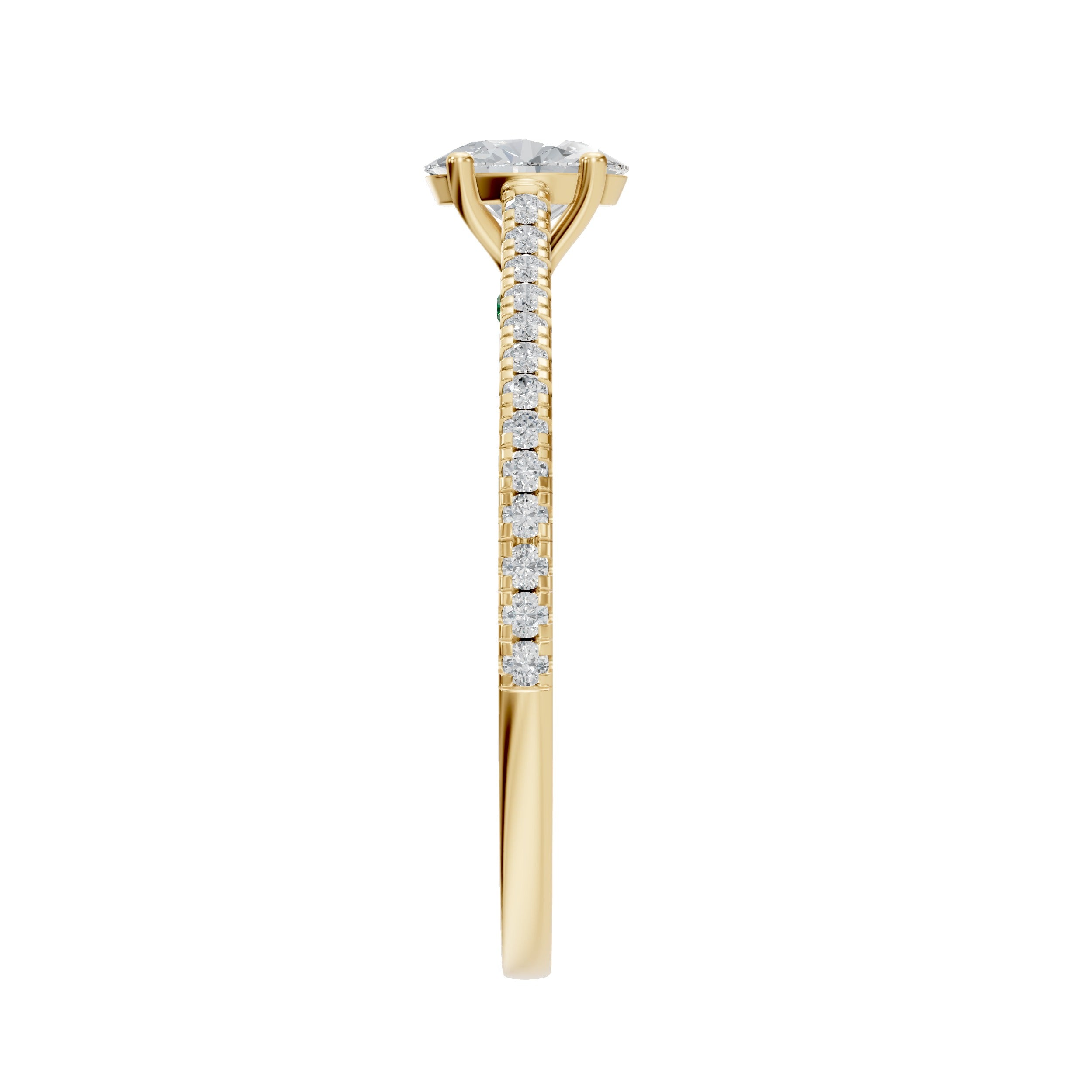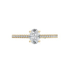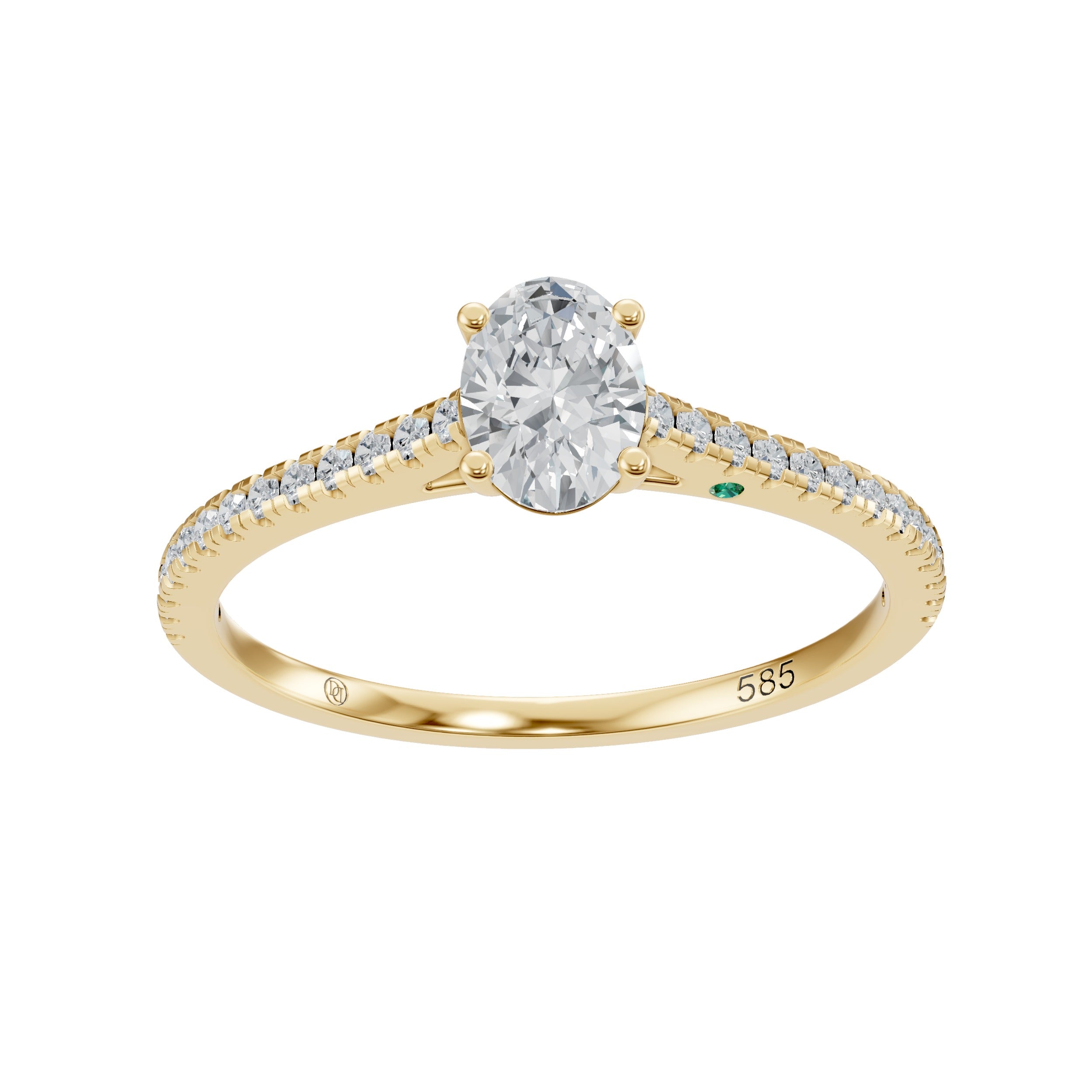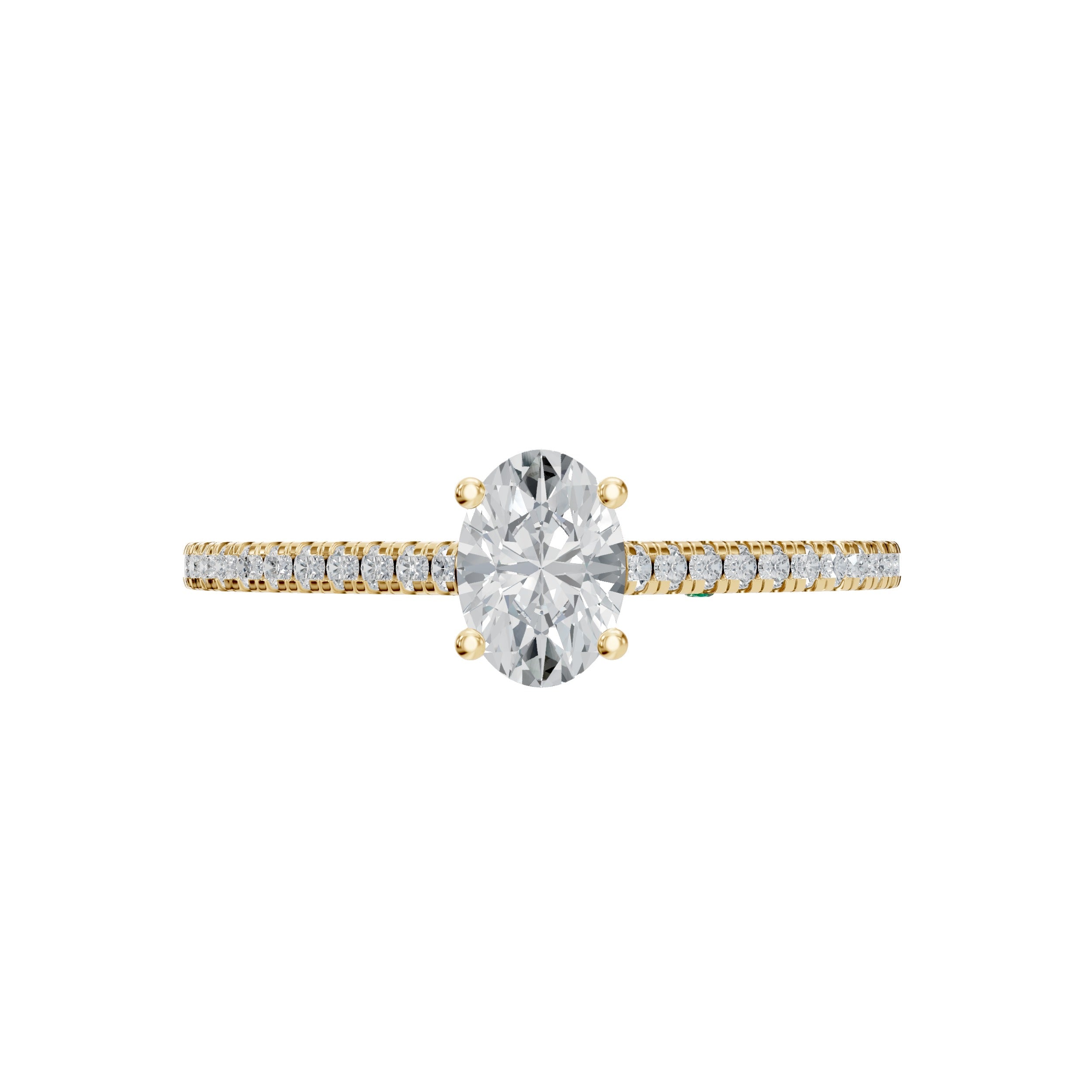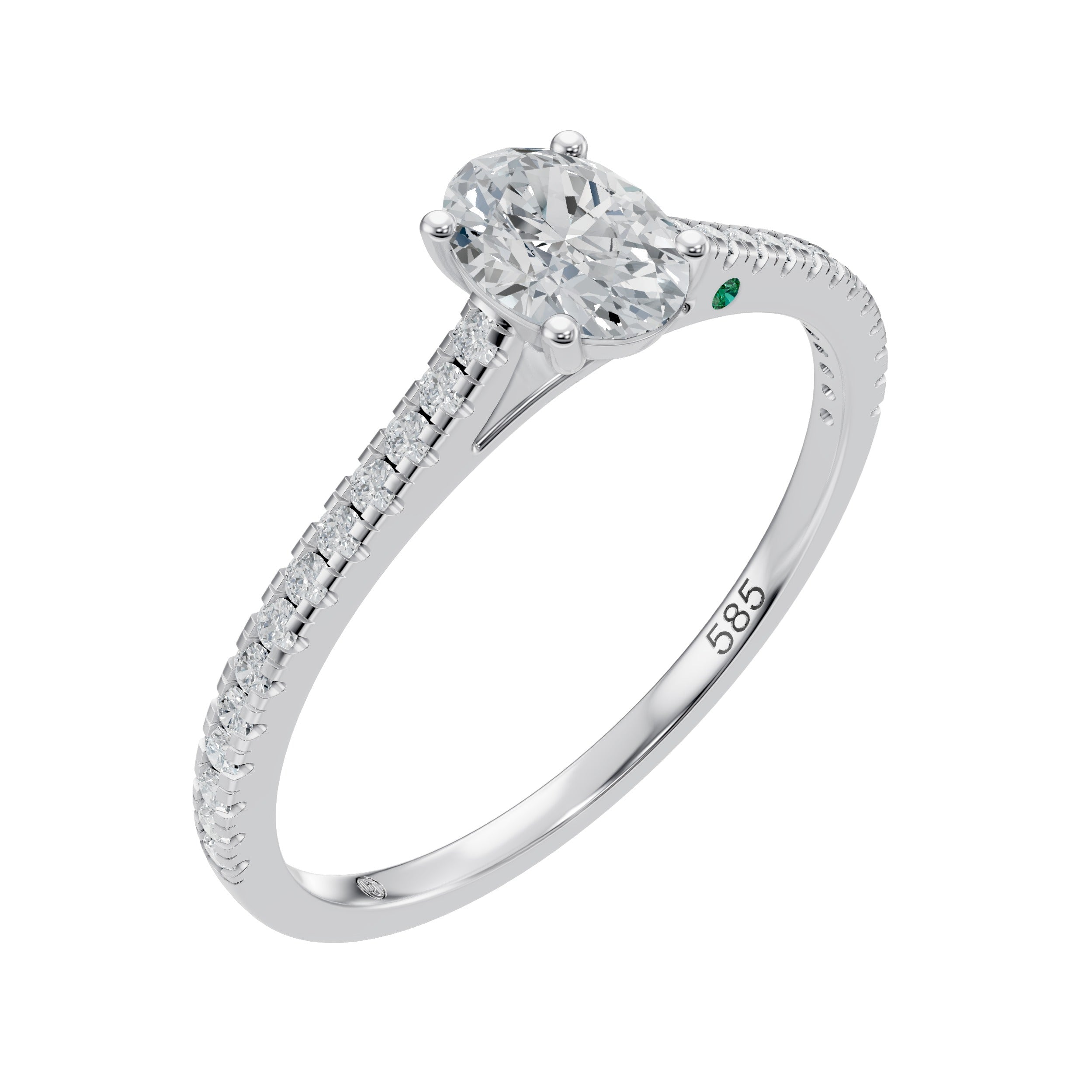 The Oval Shape Solitaire Refined ring combines timeless elegance with subtle sparkle. A lab grown oval diamond is set in 14K recycled gold, enhanced by delicate accent diamonds along the band. These refined details draw the eye toward the center stone, amplifying its natural brilliance. This engagement ring is ideal for those who seek a sophisticated design with added depth and ethical values.