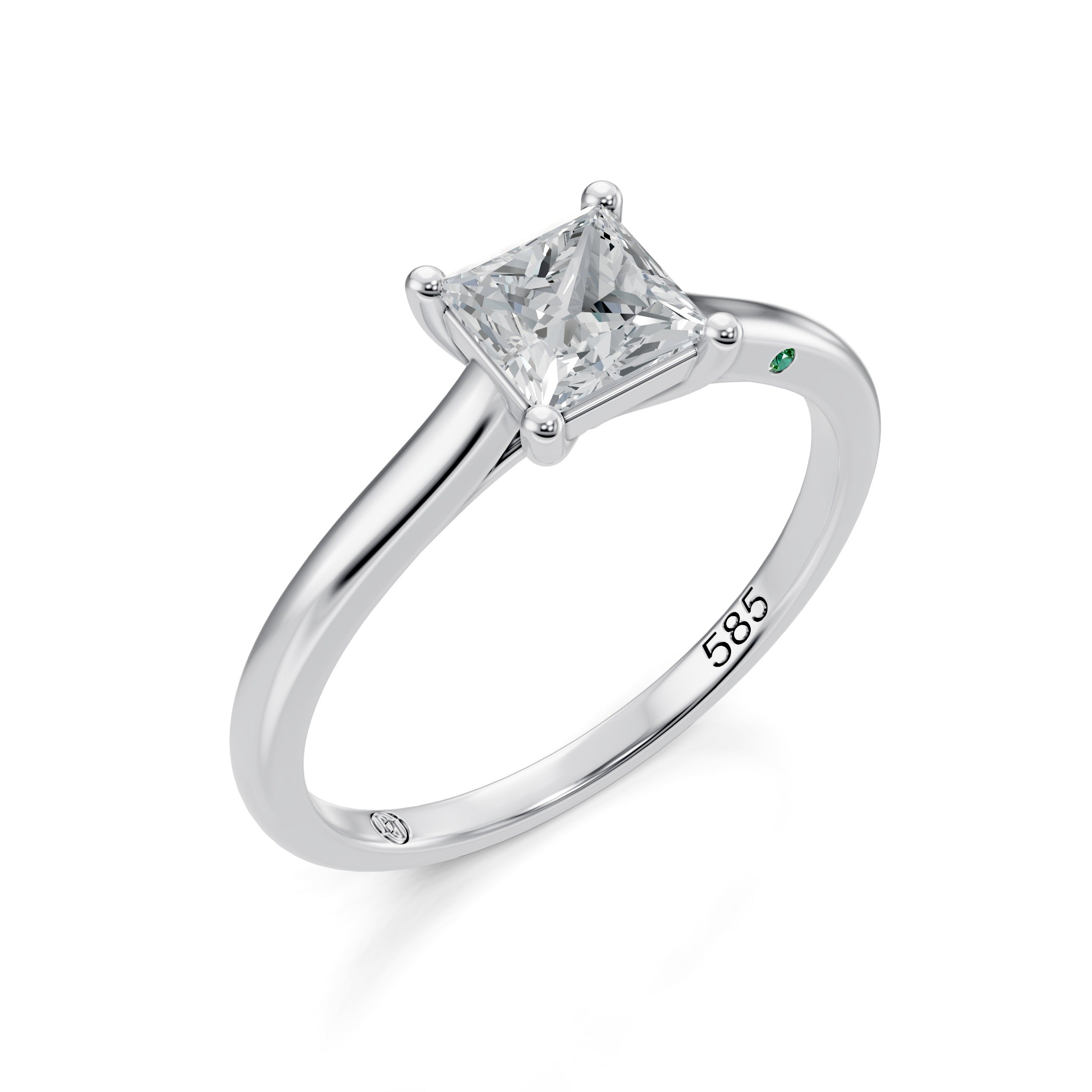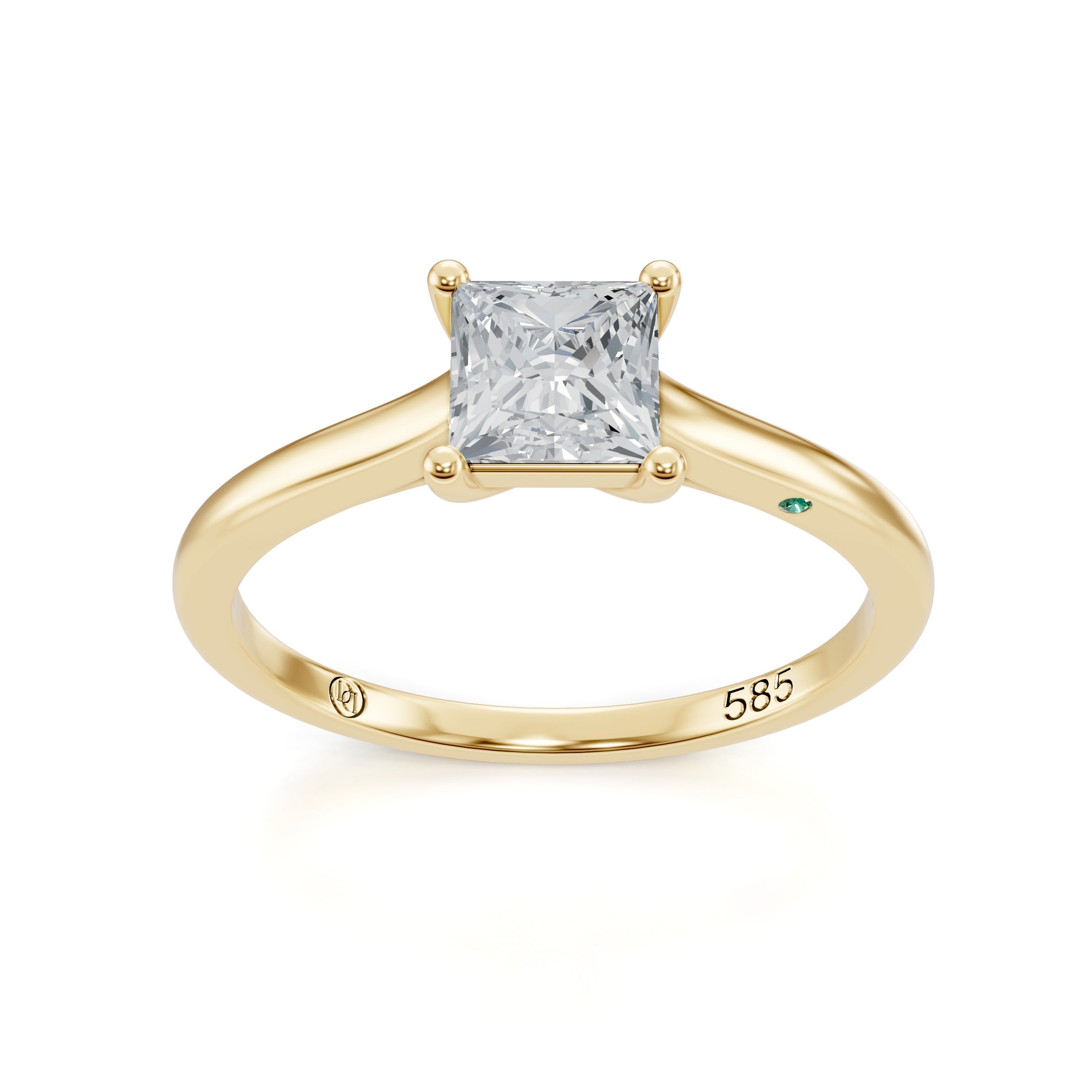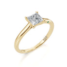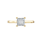 This 14K gold Princess Shape Solitaire engagement ring showcases a lab grown diamond with sharp angles and exceptional brilliance. The square silhouette maximizes light reflection, creating intense sparkle. Set in a classic solitaire setting, the diamond takes center stage, highlighting its clean lines and modern elegance. Crafted from 100% recycled gold, this ring combines contemporary design with timeless craftsmanship. Perfect for those seeking a refined and ethical engagement ring.