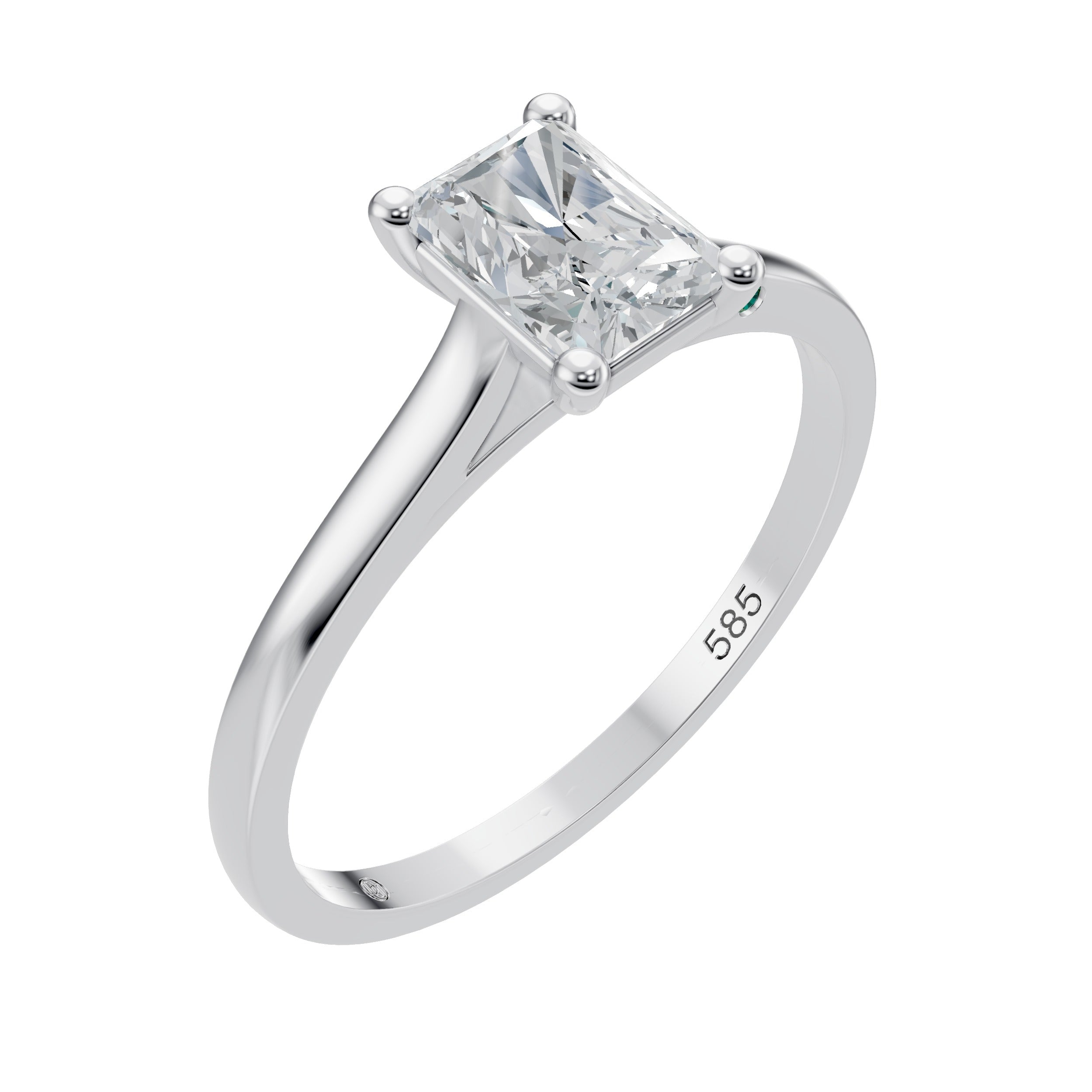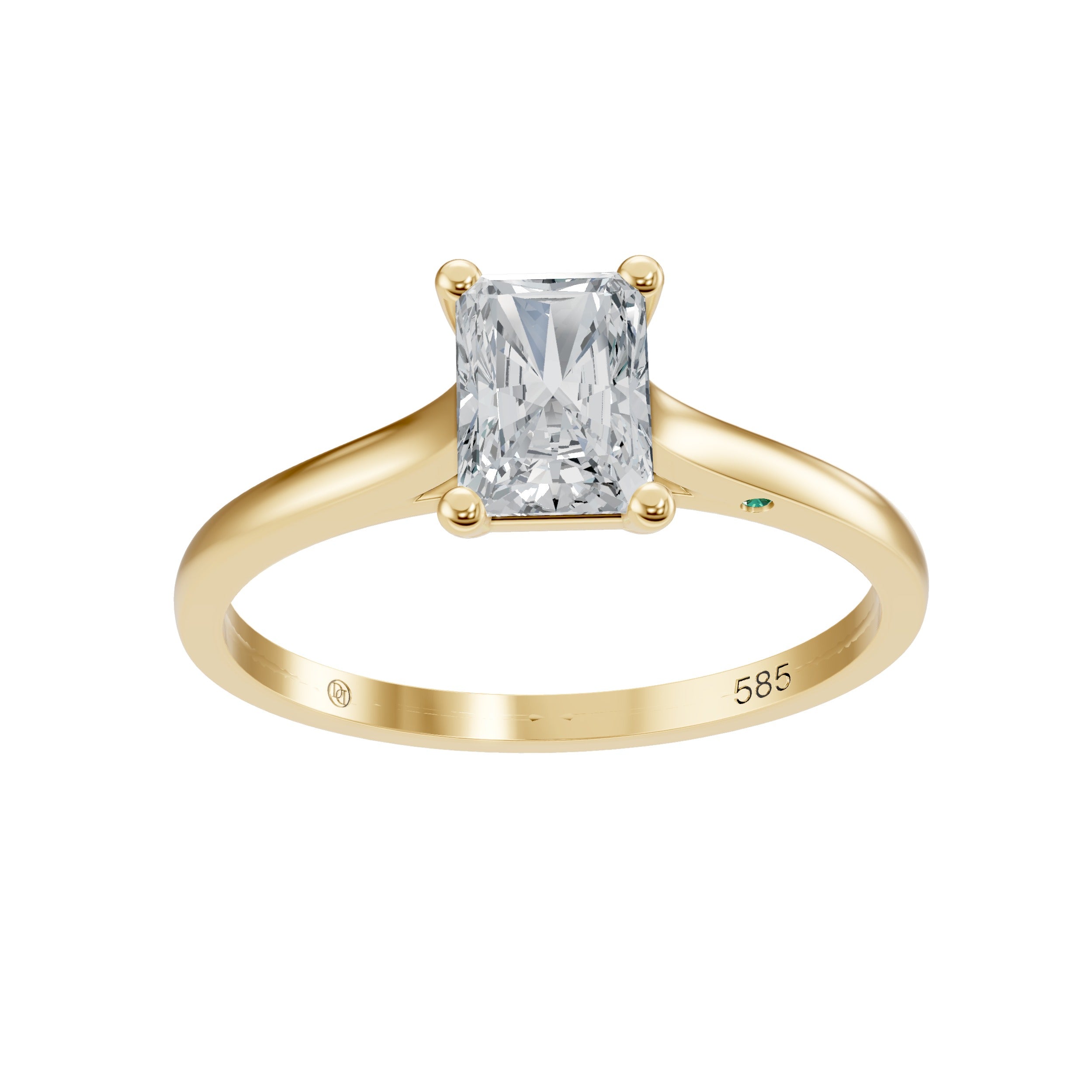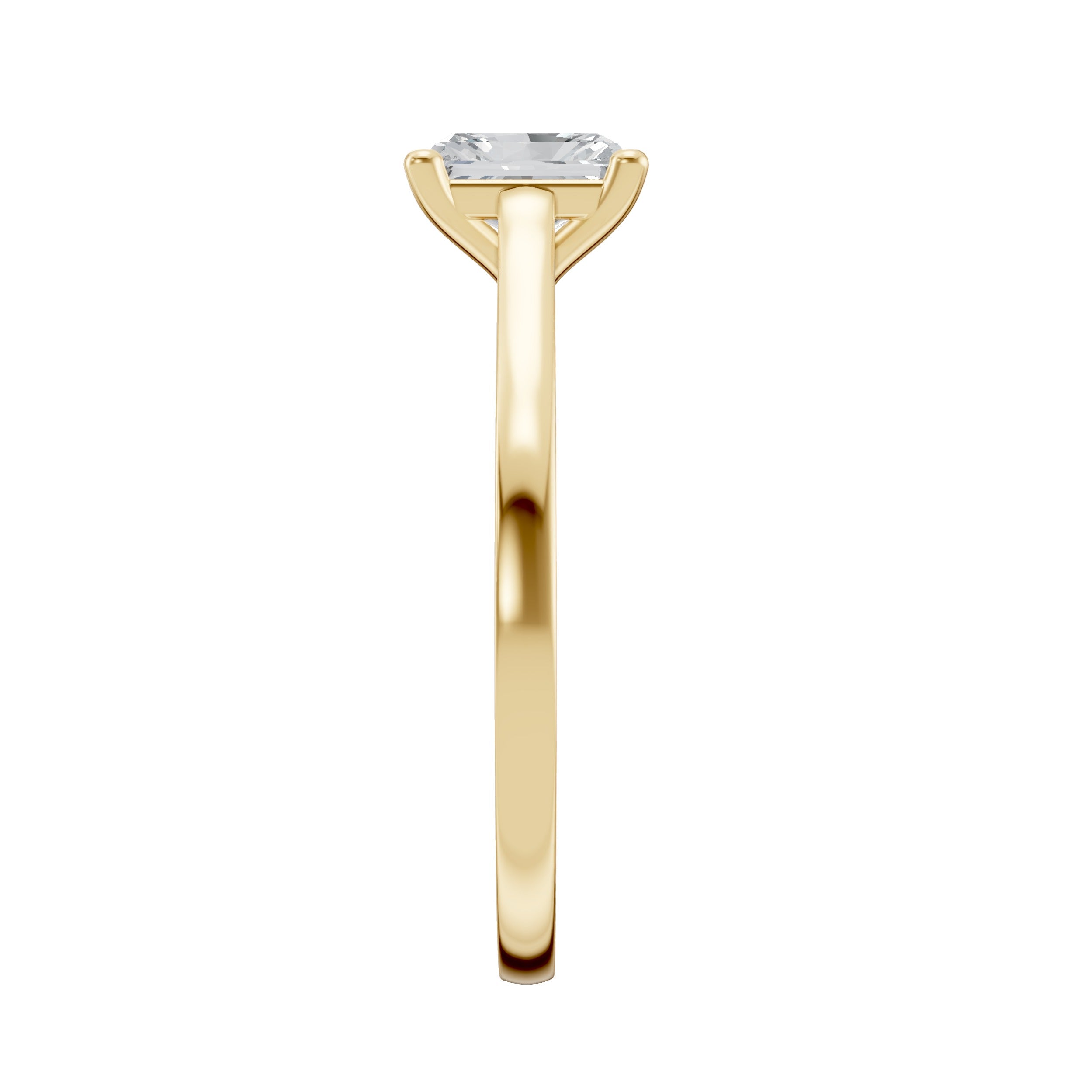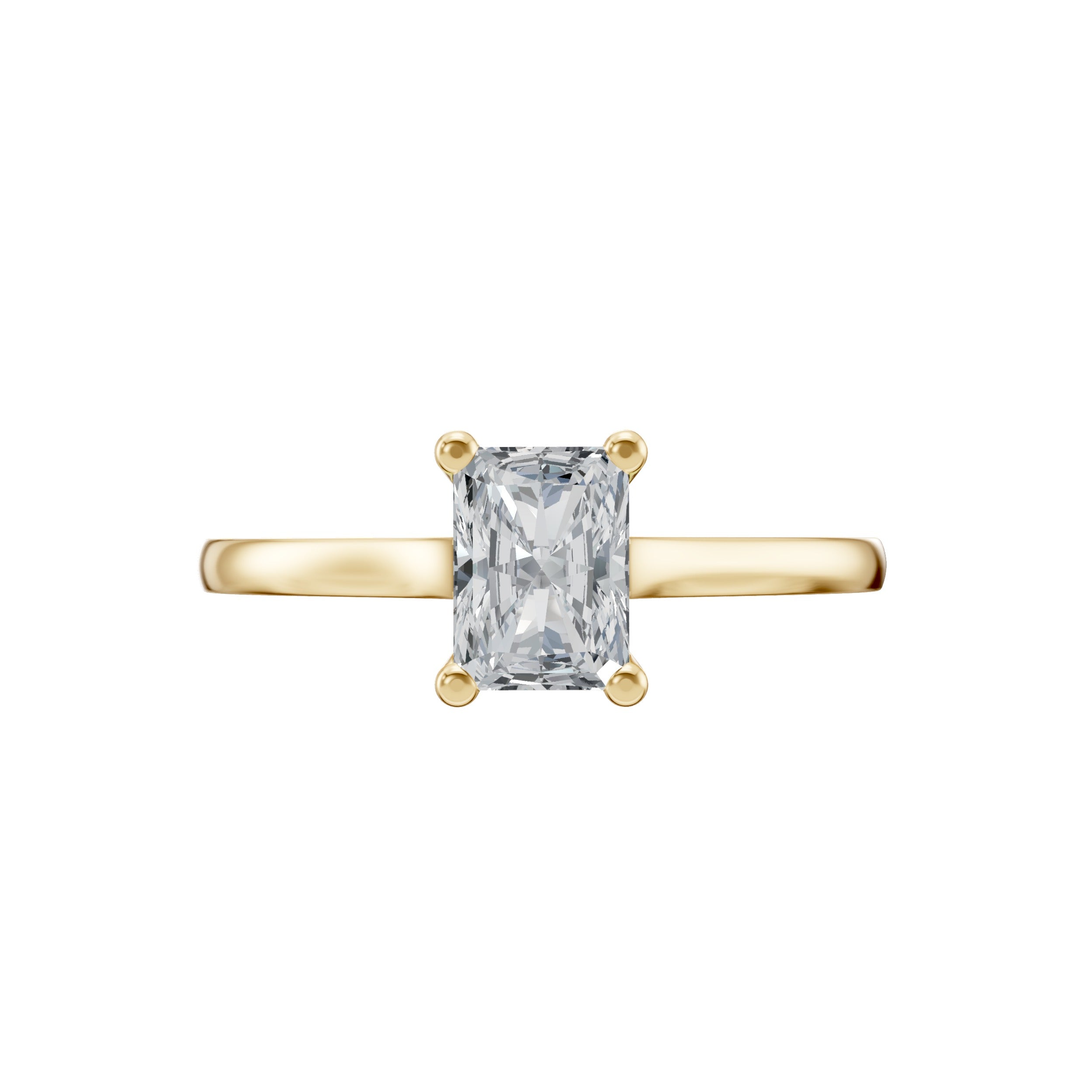 This 14K gold Radiant Shape Solitaire engagement ring features a lab grown diamond that combines the elegance of an elongated silhouette with exceptional brilliance. The radiant cut reflects light intensely, creating vibrant sparkle and fire. Set in a classic solitaire setting, the diamond remains the focal point of this refined design. Crafted from recycled gold, this ring is a modern expression of timeless luxury.